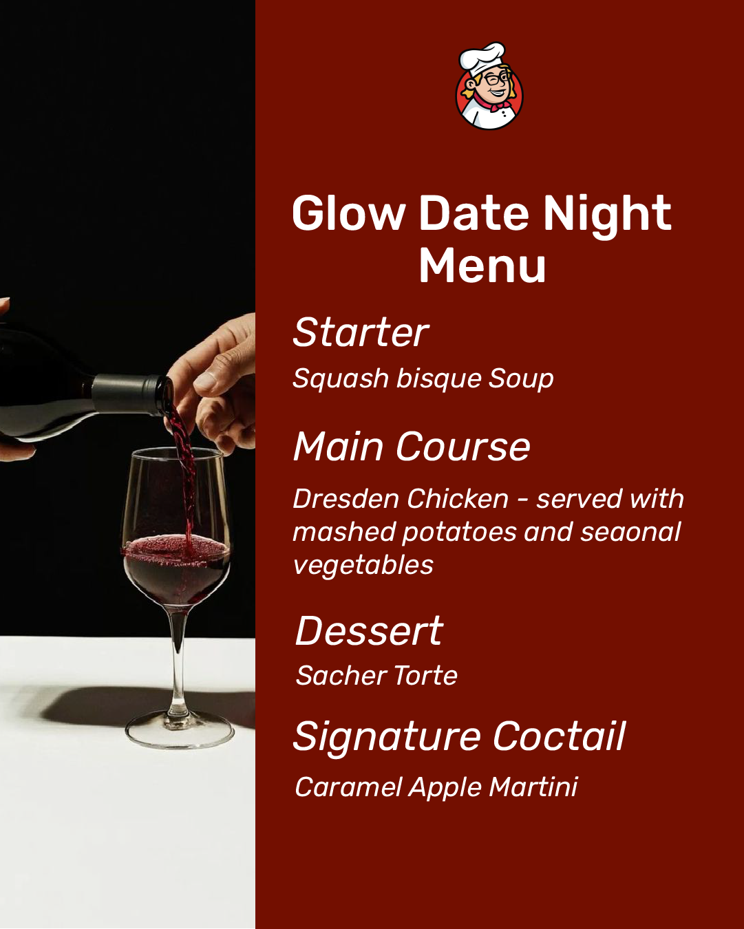Spend an intimate evening with someone special at D&N Kitchen’s Glow Date Night — where candlelight, gourmet dining, and warm ambiance come together for an unforgettable experience.